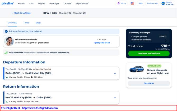 - DFW – HKG (Hong Kong) – SGN (Ho Chi Minh City) – HKG – DFW