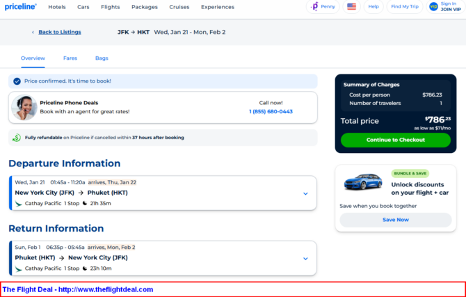• JFK –  HKG (Hong Kong) – HKT (Phuket) – HKG – JFK