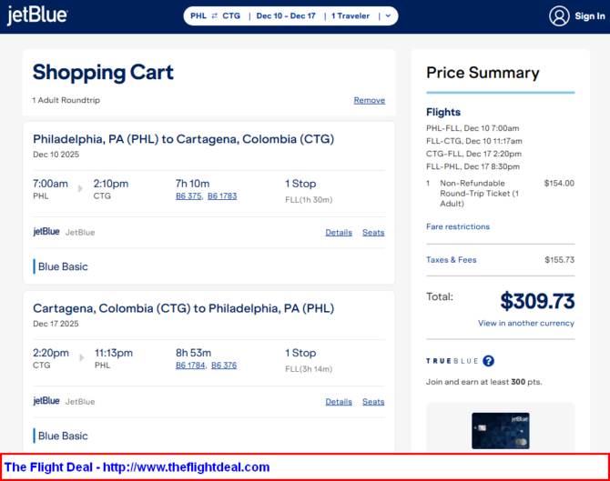 • PHL – FLL (Fort Lauderdale) – CTG (Cartagena) – FLL – PHL