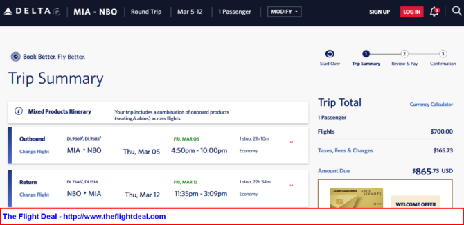 MIA – AMS (Amsterdam) – NBO (Nairobi) – JFK (New York) – MIA