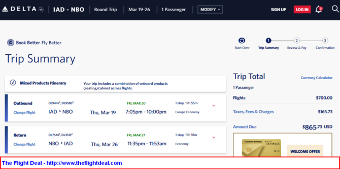 IAD – AMS (Amsterdam) – NBO (Nairobi) – JFK (New York) – IAD