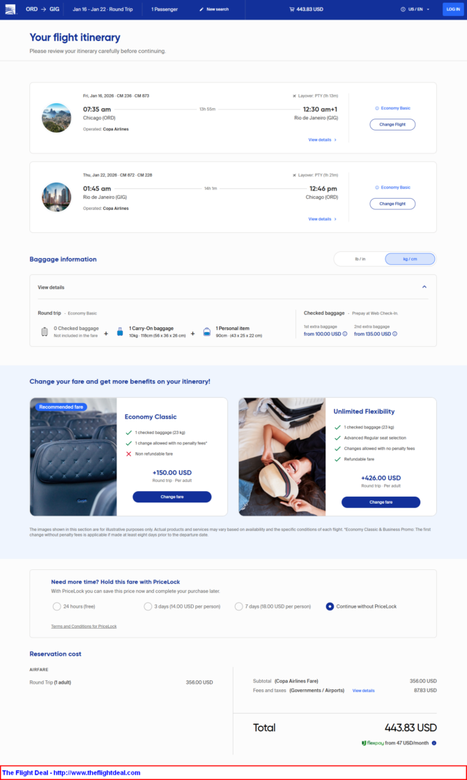 • ORD – PTY (Panama City) – GIG (Rio de Janeiro)- PTY – ORD