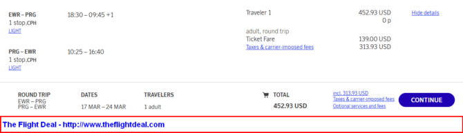 - EWR – CPH (Copenhagen) – PRG (Prague) – CPH – EWR