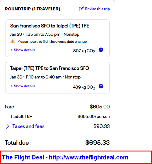 • SFO – TPE (Taipei) – SFO