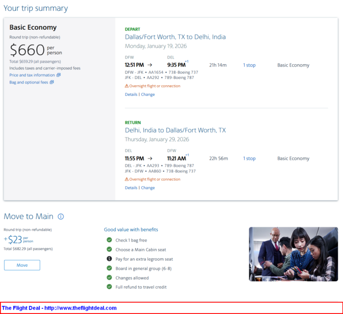 • DFW – JFK (New York) – DEL (New Delhi) – JFK – DFW