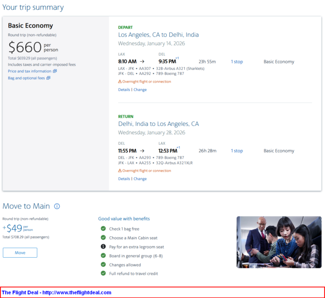 LAX – JFK (New York) – DEL (New Delhi) – JFK – LAX