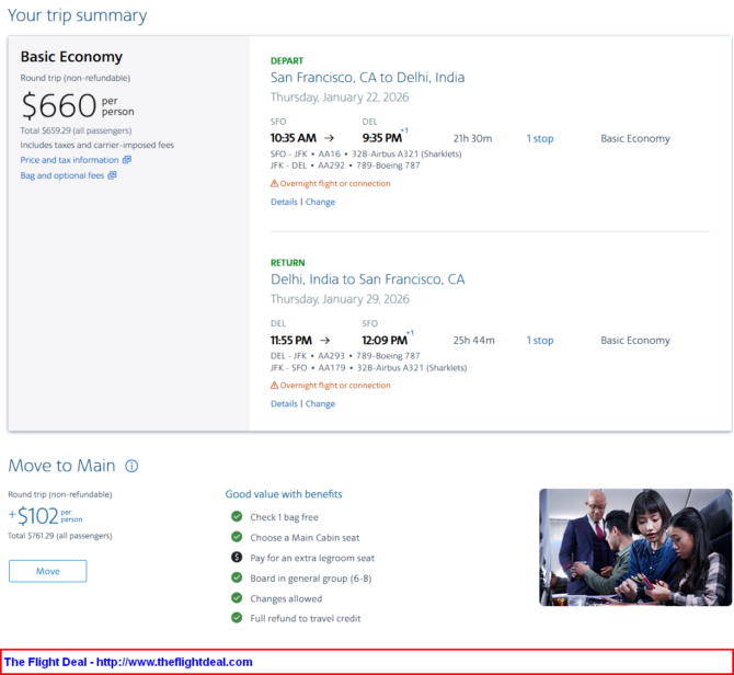 SFO – JFK (New York) – DEL (New Delhi) – JFK – SFO