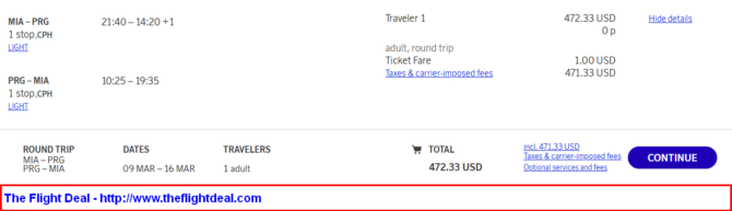 • MIA – CPH (Copenhagen) – PRG (Prague) – CPH – MIA