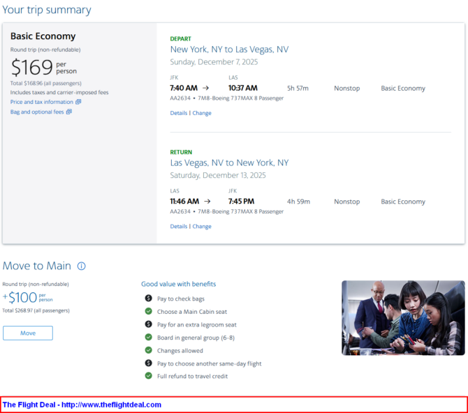 Book on American with dates found on Matrix Airfare Search by ITA Software