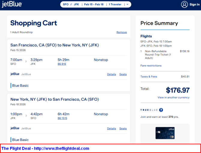 • Book on jetBlue with dates found on Matrix Airfare Search by ITA Software.