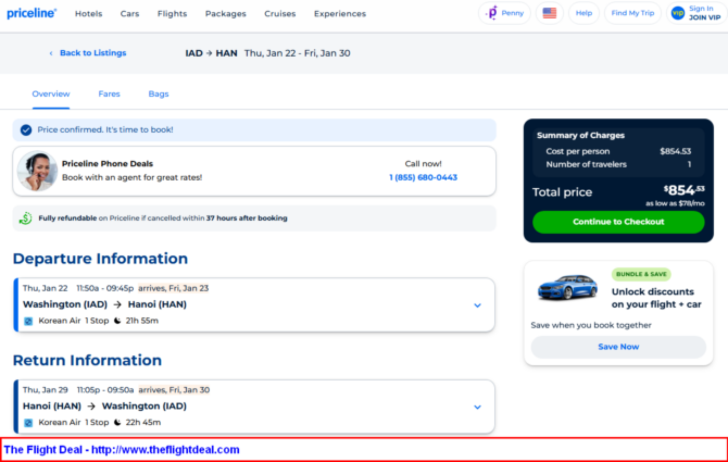 - IAD – ICN (Seoul) – HAN (Hanoi) – ICN – IAD