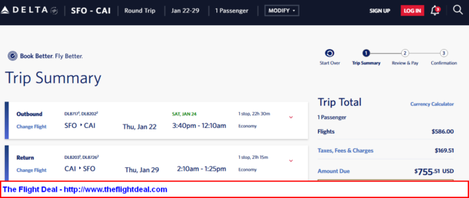 SFO – CDG (Paris) – CAI (Cairo) – CDG – SFO