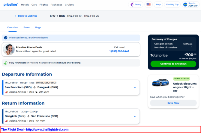 - SFO – ICN (Seoul) – BKK (Bangkok) – ICN – SFO