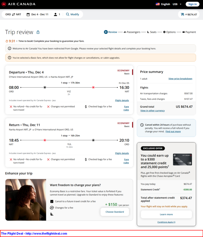 • ORD – YYZ (Toronto) – NRT (Tokyo – Narita) – YUL (Montreal) – ORD