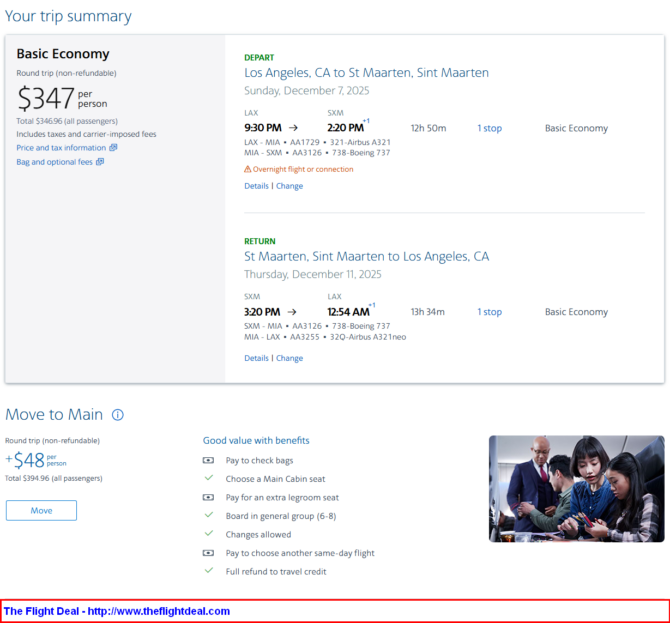 • LAX – MIA (Miami) – SXM (St. Maarten) – MIA  – LAX