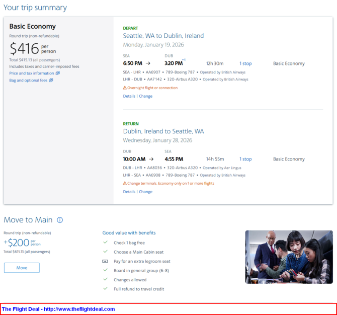 SEA – LHR (London) – DUB (Dublin) – LHR – SEA