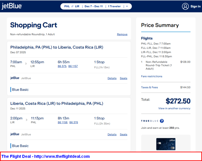Valid for travel in early December. Availability is limited. Must purchase at least 14 days in advance of departure