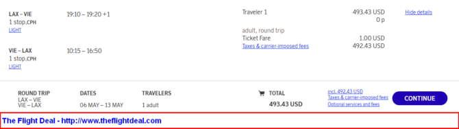 • LAX – CPH (Copenhagen) – VIE (Vienna) – CPH – LAX