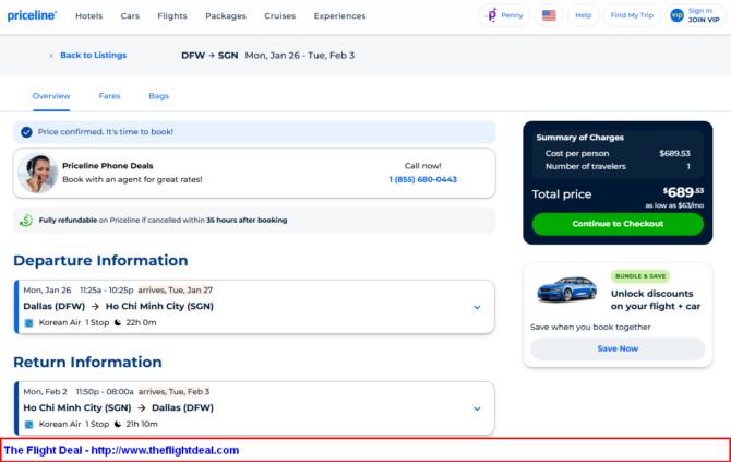 - DFW – ICN (Seoul) – SGN (Ho Chi Minh City) – ICN – DFW