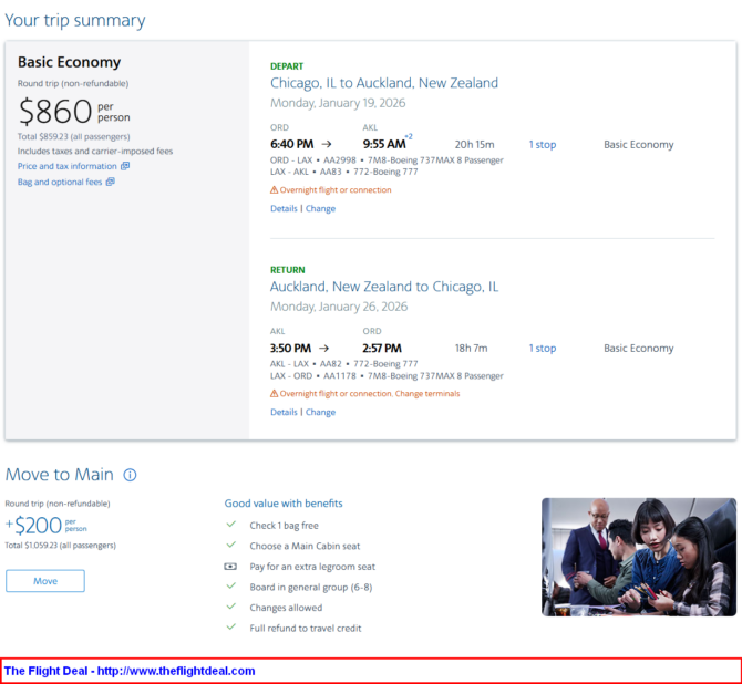 • ORD – LAX (Los Angeles) – AKL (Auckland) – LAX – ORD