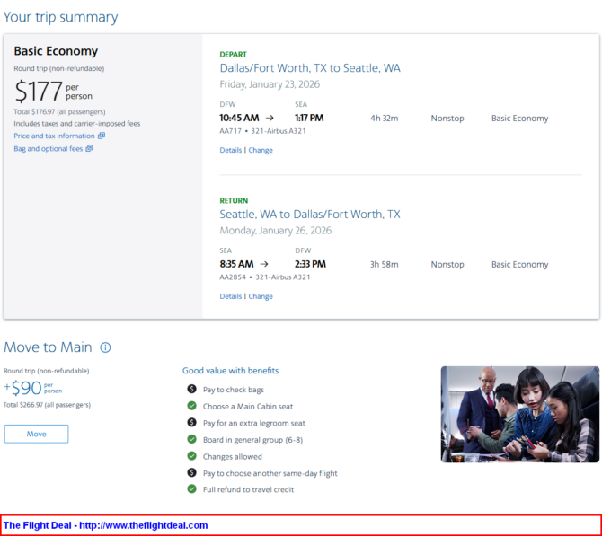 DFW – SEA (Seattle) – DFW