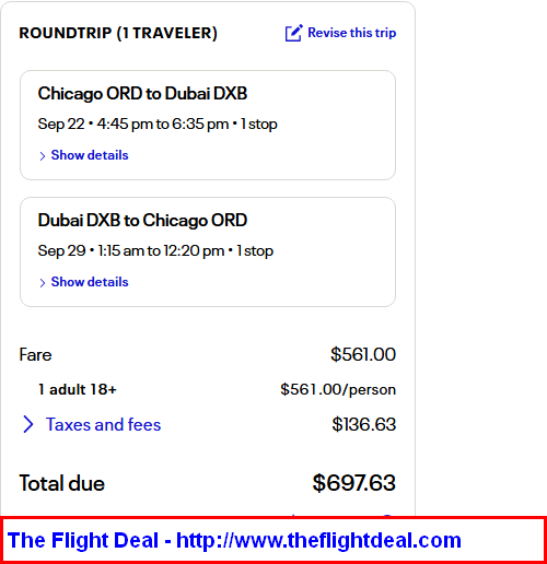 ORD – EWR (Newark) – DXB (Dubai) – ZRH (Zurich) – ORD