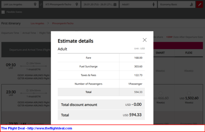 - LAX – ICN (Seoul) – KTI (Phnom Penh) – ICN – LAX