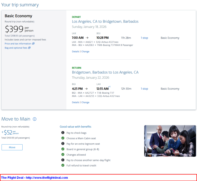 • LAX – MIA (Miami)  – BGI (Barbados) – MIA  – LAX