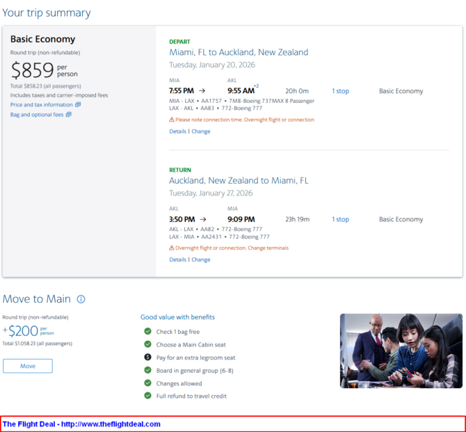 MIA – LAX (Los Angeles) – AKL (Auckland) – LAX – MIA