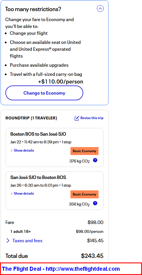 BOS – IAH (Houston) – SJO (San Jose) – IAH – BOS