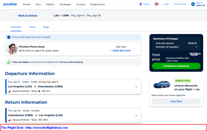 - LAX – ICN (Seoul) – UBN (Ulaanbaatar) – ICN – LAX