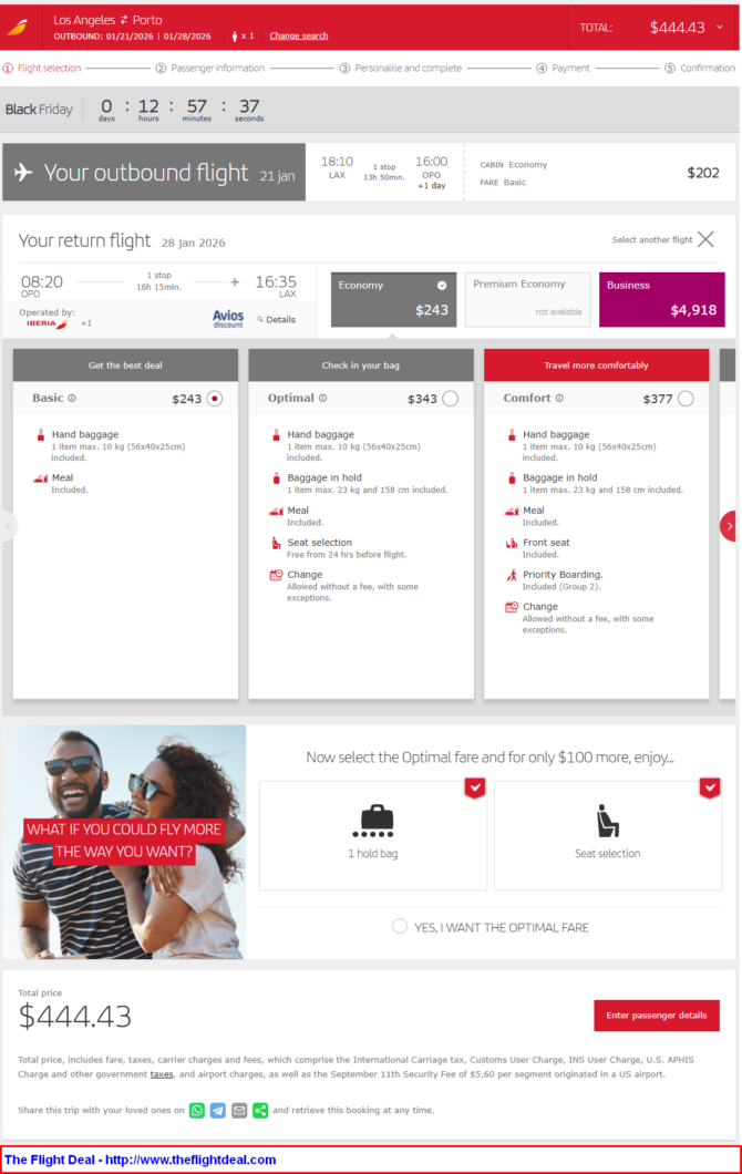 • Select Optimal fare for the regular economy fare with one checked bag included