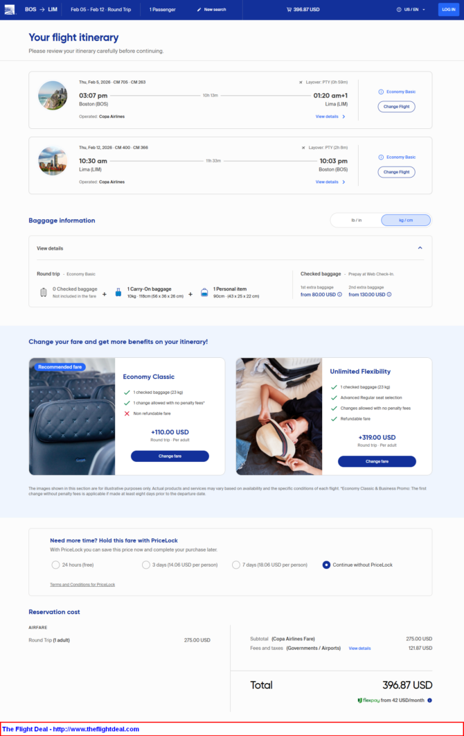 • BOS – PTY (Panama City) – LIM (Lima) – PTY – BOS