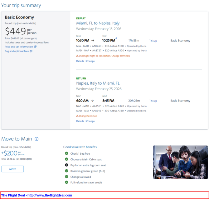 MIA – MAD (Madrid) – NAP (Naples) – MAD – MIA