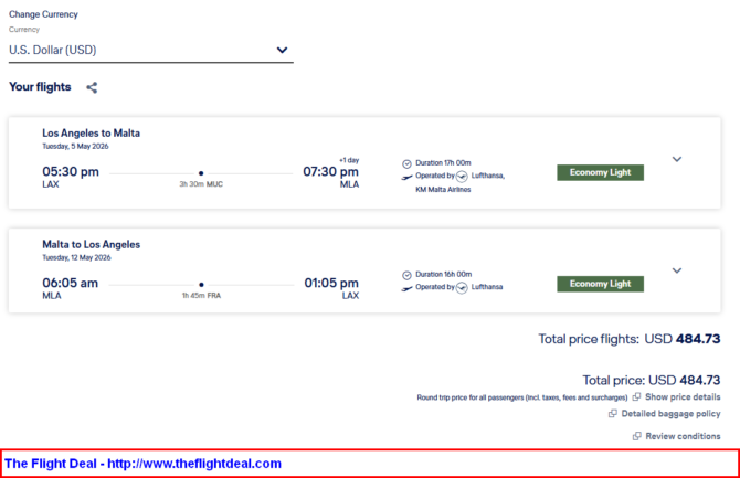 - LAX – MUC (Munich) – MLA (Malta) – FRA (Frankfurt) – LAX