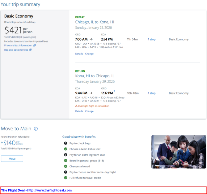 ORD – LAX (Los Angeles) – KOA (Kona) – LAX – ORD