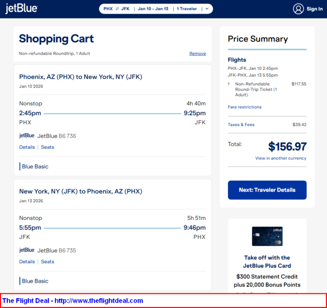 This works both ways, so JFK can be the Origin and PHX can be the Destination