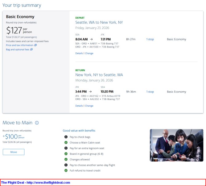SEA – ORD (Chicago) – JFK (New York) – ORD – SEA