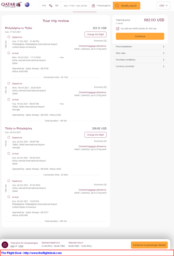 - PHL – DOH (Doha) – TBS (Tbilisi) – DOH – PHL