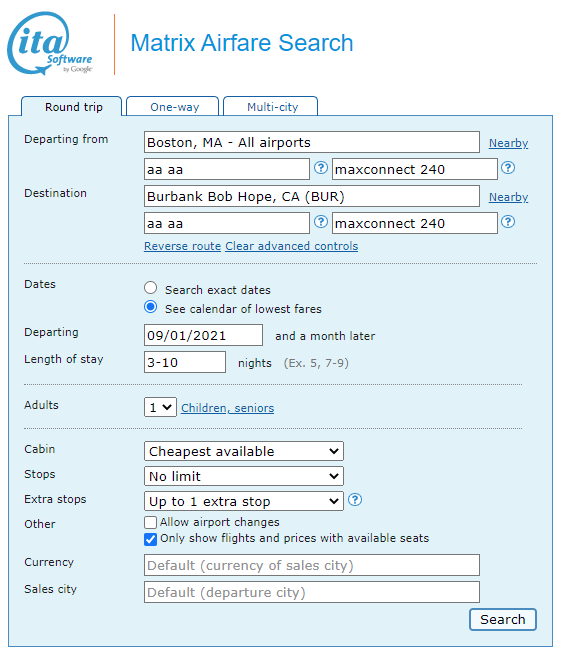 You cannot buy tickets using ITA. To buy, follow our instructions in the “How to Book” section below.