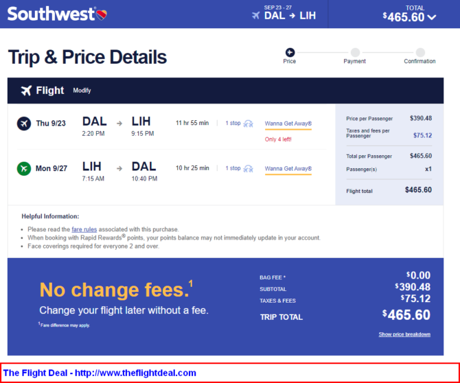 DAL – PHX (Phoenix) – LIH (Kauai) – OAK (Oakland) DAL