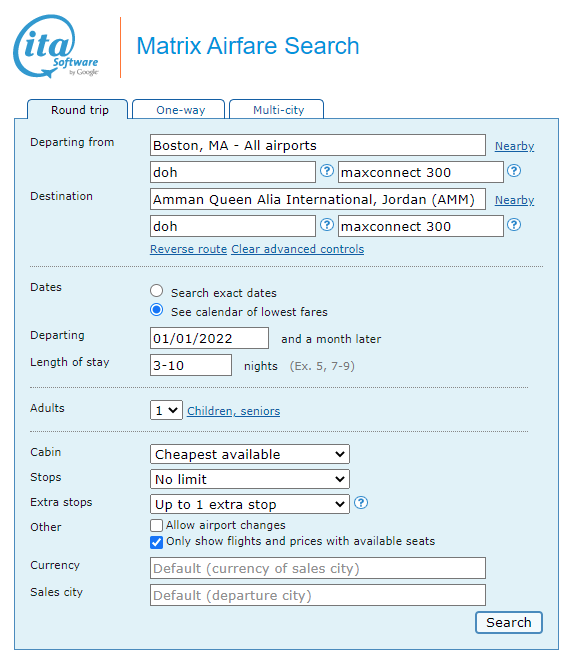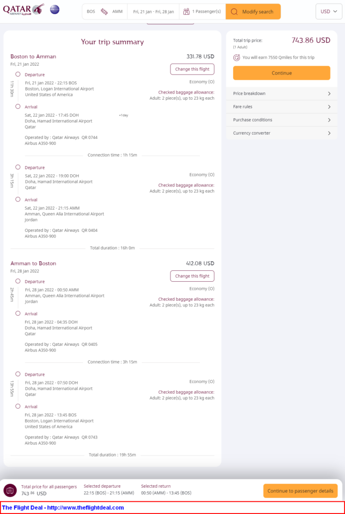• BOS – DOH (Doha) – AMM (Amman) – DOH – BOS