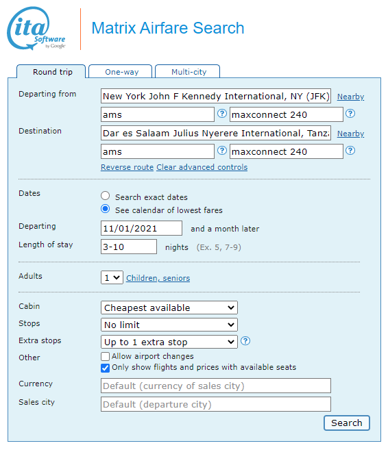 You cannot buy tickets using ITA. To buy, follow our instructions in the “How to Buy” section below.