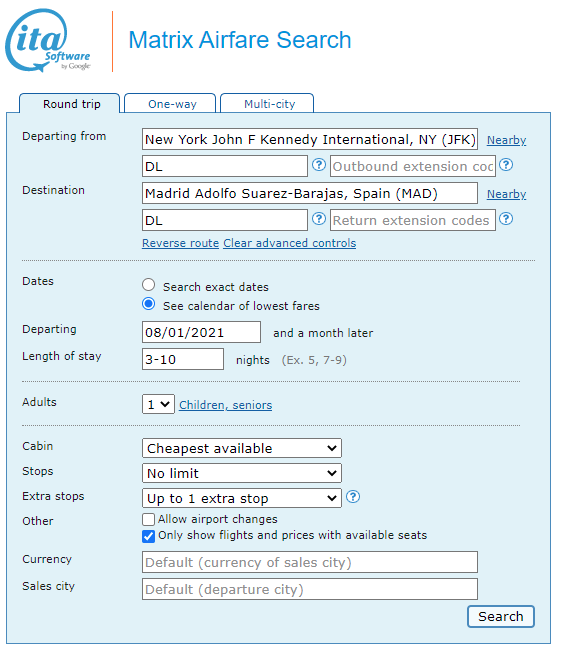 You cannot buy tickets using ITA. To buy, follow our instructions in the “How to Buy” section below.