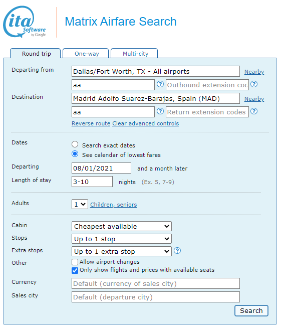 • Support us by using our Priceline link to book with dates found on ITA Software Matrix Airfare Search.