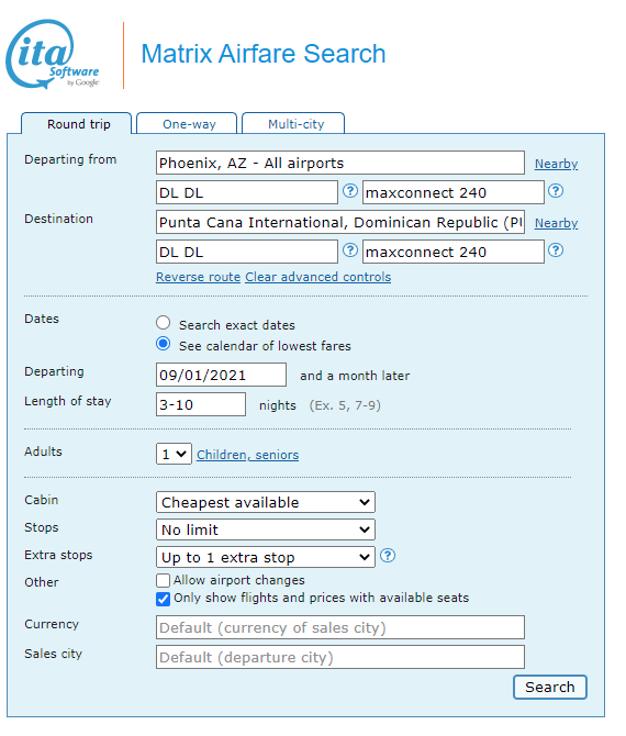 You cannot buy tickets using ITA. To buy, follow our instructions in the “How to Buy” section below.
