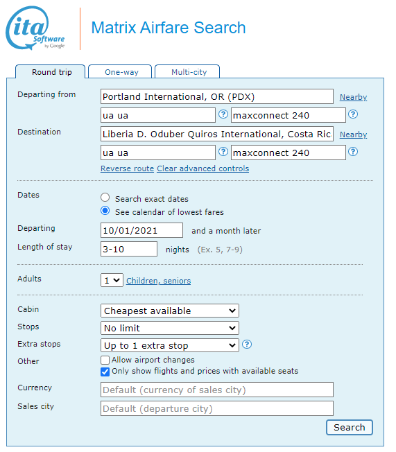You cannot buy tickets using ITA. To buy, follow our instructions in the “How to Buy” section below.