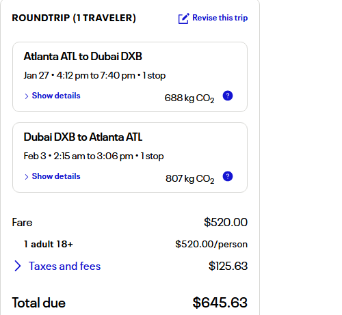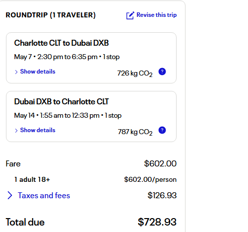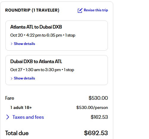- IAH – EWR (Newark) – DXB (Dubai) – EWR – IAH