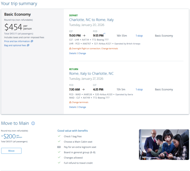 - CLT – LHR (London) – BCN (Barcelona) – ORD (Chicago) – CLT