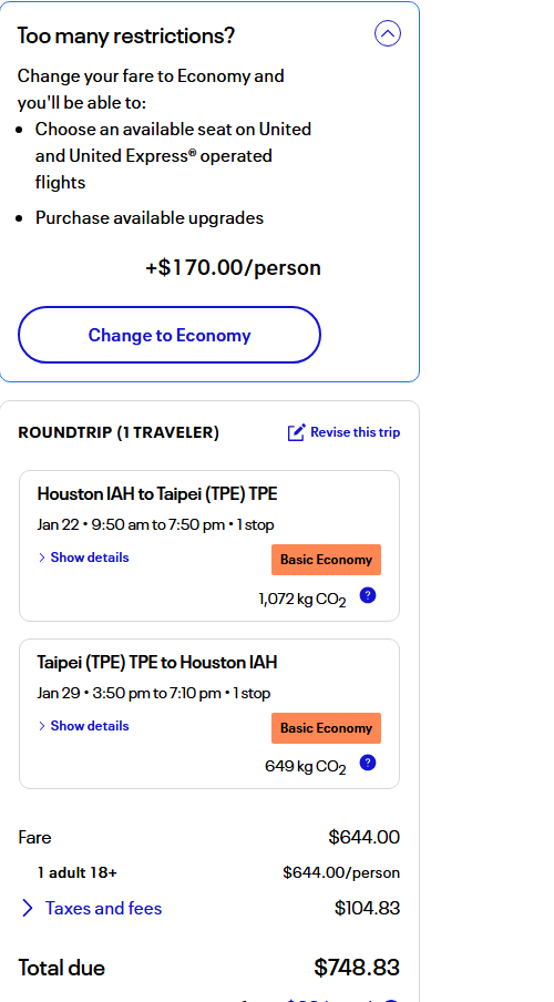 United: Houston – Taipei, Taiwan. $749 (Basic Economy) / $919 (Regular Economy). Roundtrip, including all Taxes